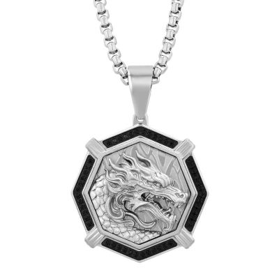 1/4ctw Black Diamond Stainless Steel Dragon Pendant In Two-tone