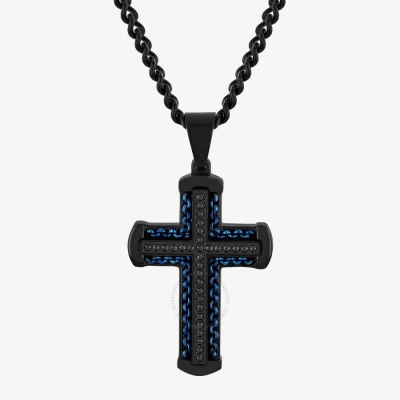 1/4ctw Black Diamond Stainless Steel With Black & Blue Finish Cross Pendant In Two-tone
