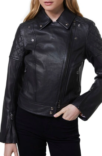 Monroe Quilted Detail Leather Moto Jacket In Black