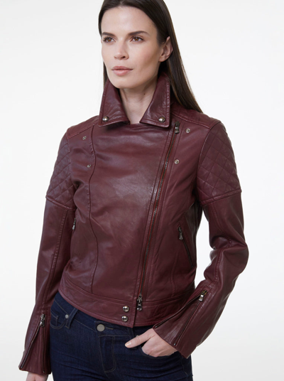 Monroe Nappa Leather Moto Jacket In Dark Red