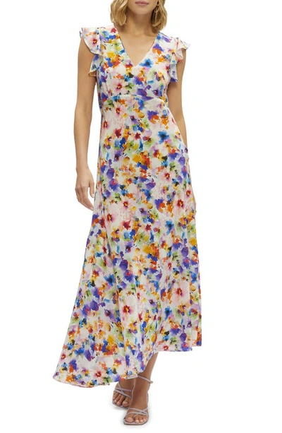 Leighton Floral-print Flutter-sleeve Maxi Dress In Neutral