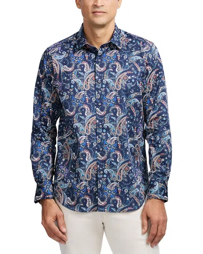Delancey Damask Print Stretch Cotton Button-up Shirt In Blue