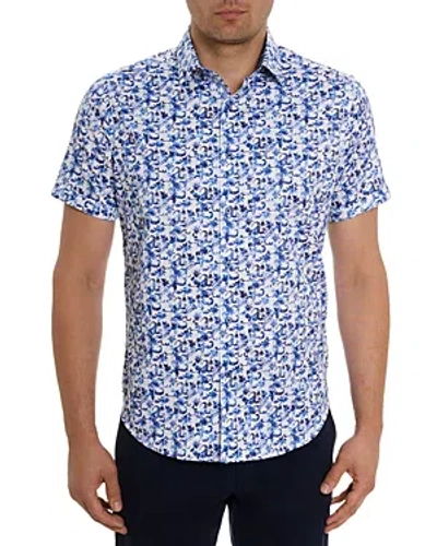Dominus Tailored Fit Floral Cotton Button-up Shirt In White