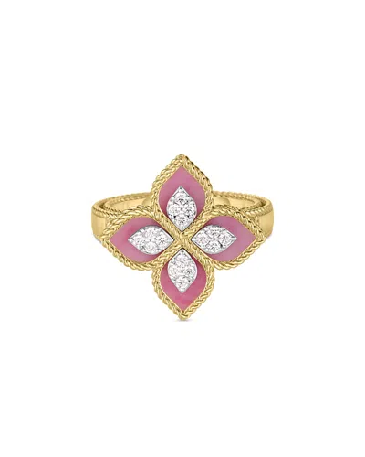 18k Yellow Gold Diamond, Pink Opal & Mother Of Pearl Venetian Princess Medallion Reversible Ring In Pink/gold