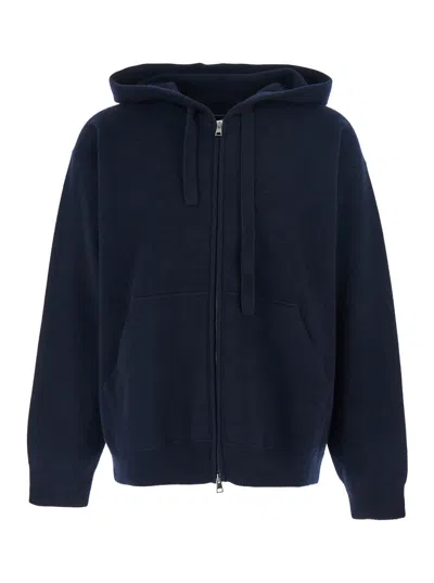 Hooded Terry Sweater With Ribbed Cuffs And Hem In Blue
