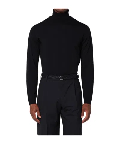 High-necked Long-sleeve Knitted Sweater In Black