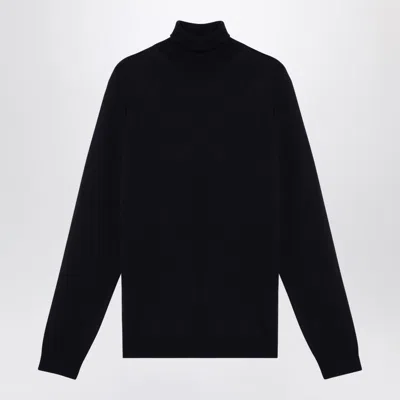 Anthracite Grey Wool Turtleneck Sweater In Black