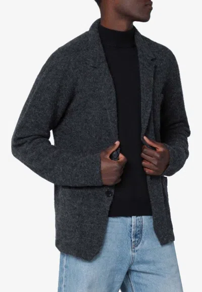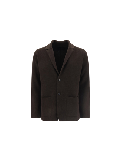 Blue Jacket With High Neck And Front Zip Closure In Wool And Cashmere Blend Man In Animal Print