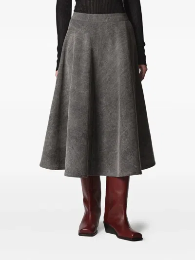 Pleated Midi Skirt With Crinkled Texture And Elastic Waistband In Gray