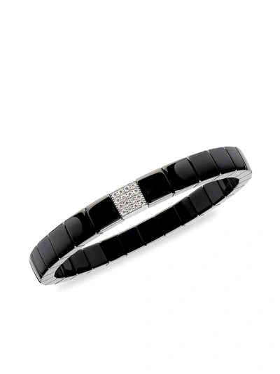 18k White Gold & Black Ceramic Scacco Diamond Stretch Bracelet In White/black