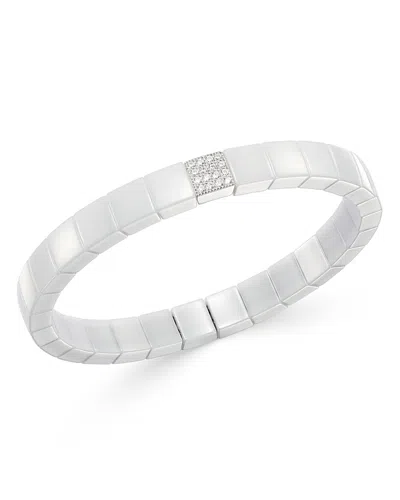 18k White Gold & White Ceramic Scacco Diamond Stretch Bracelet