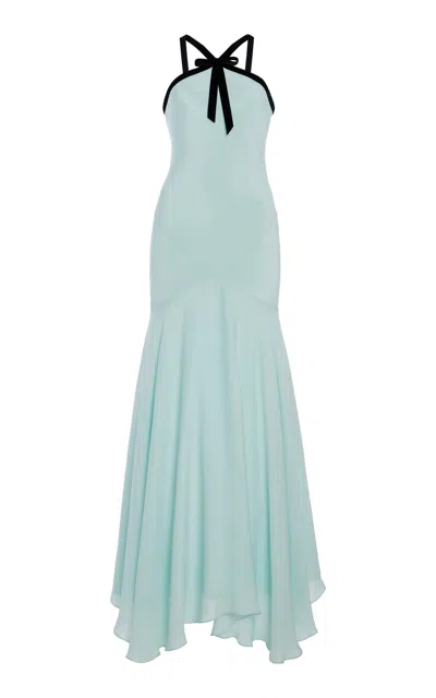 Bow-detailed Silk Crepe And Georgette Halter Dress In Blue
