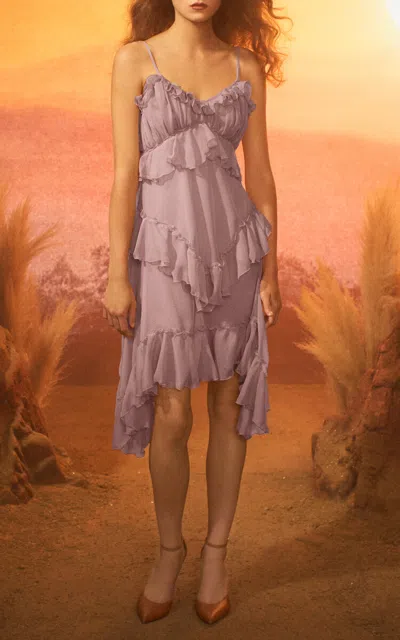 Belted Wrap-effect Pleated Polka-dot Silk-twill Mini Dress In Pink