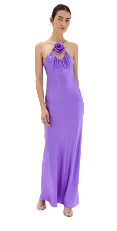 Floral-appliquéd Ruched Silk-satin Maxi Dress In Purple