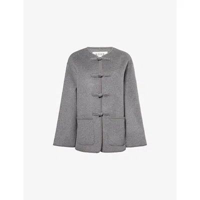 Womens Mid Grey Melange Round-neck Patch-pocket Wool-and-cashmere Jacket In Gray