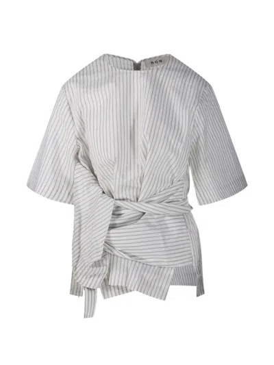 Striped Tie Blouse In White