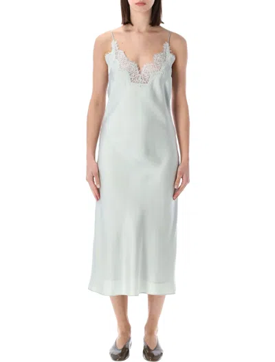 Elegant Midi Slip Dress With Delicate Applique In Green