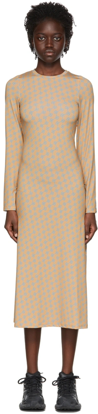 Brown Polyester Mid-length Dress In 14lightbrownblueembl