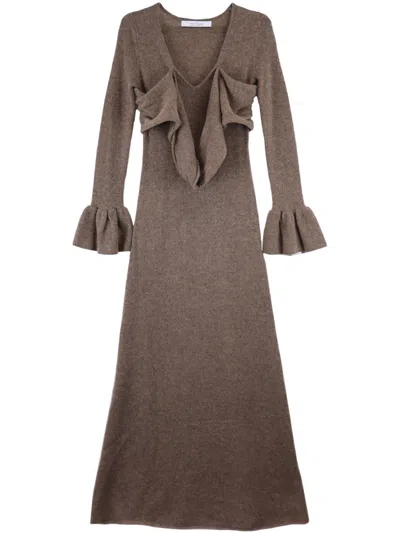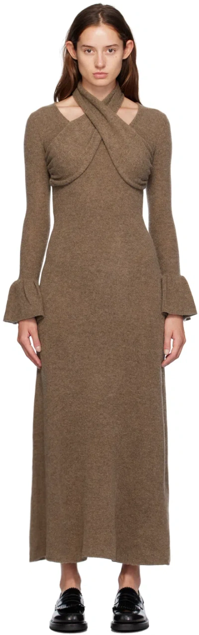 Brown Cross Knitted Maxi Dress In 0516melangetaupe