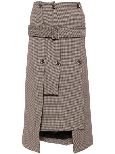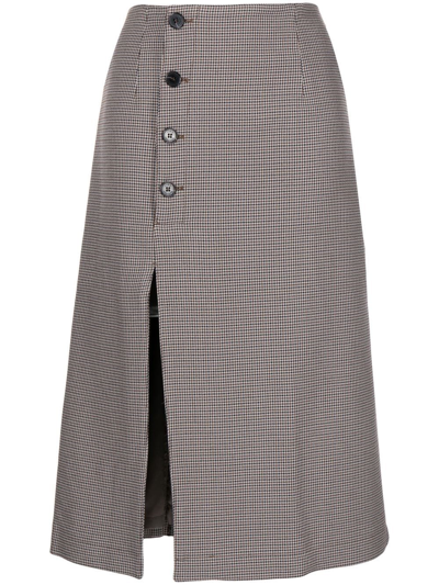 Houndstooth Midi Skirt With Button Detail In Brown Dogtooth