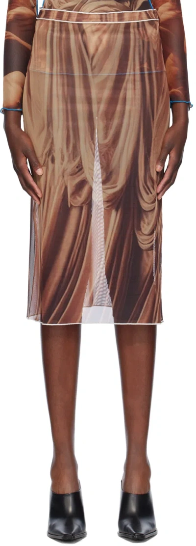 Beige Double Layered Pleated Midi Skirt In 0401 Oat Beige