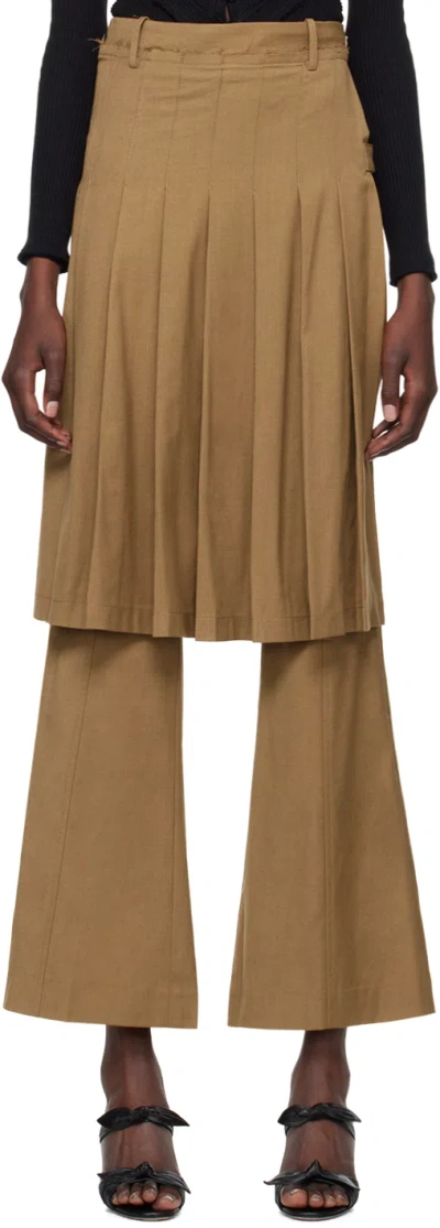 Tan Pleated Midi Skirt Trousers In 02vintagebrown