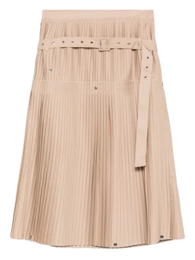 Beige Double Layered Pleated Midi Skirt In 0401 Oat Beige