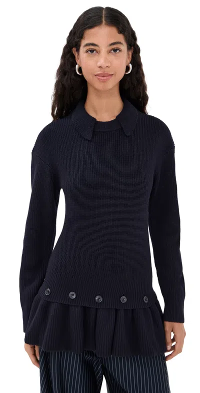 Detachable Peplum Knit Sweater Dark Navy In Blue