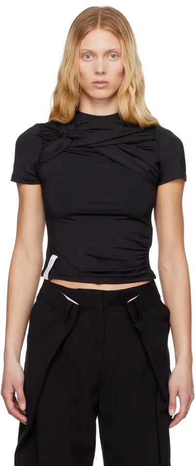 Black Twisted Knot Half Sleeve T-shirt In Pm 4004 Black