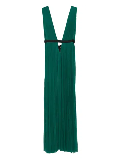 ATHENS V领百褶超长连衣裙