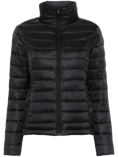 Stripe-detail Long-sleeve Puffer Jacket In 黑色