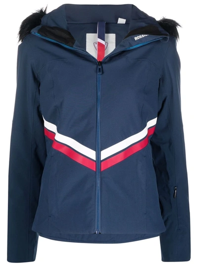 Stripe-detail Long-sleeve Puffer Jacket In 黑色