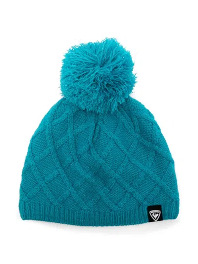 Kids' Paterned-intarsia Pompom Beanie In Blue