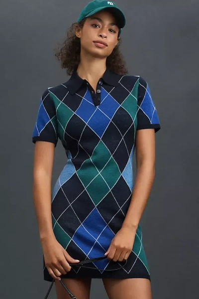 Short-sleeve Argyle Sweater Mini Dress In Blue