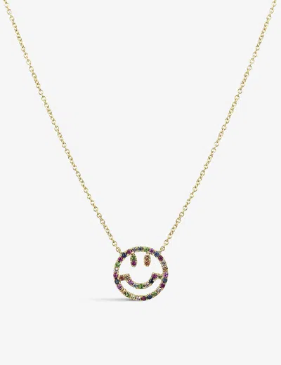 Bow Have A Nice Day 14ct Yellow-gold, 0.26ct Sapphire, 0.07ct Tsavorite And 0.07ct Ruby Necklace In Yellow Gold