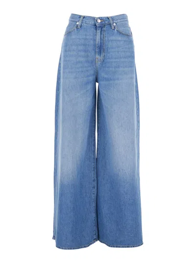 Js) Super Wide Woman Denim Tencel Ocean Denim In Blue