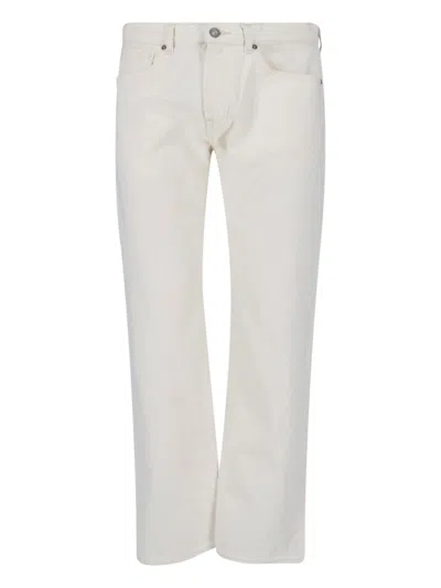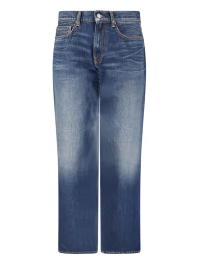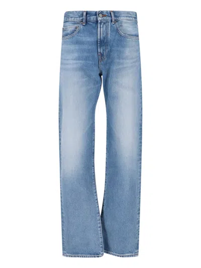 Straight-leg Light Denim Jeans With Signature Stitching In Blue