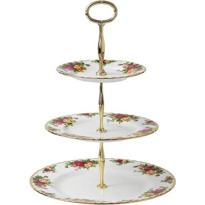 Old Country Roses White Vintage 3 Tier Cake Plate