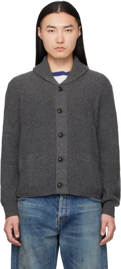 Shawl-collar Waffle-knit Cashmere Cardigan In Gray