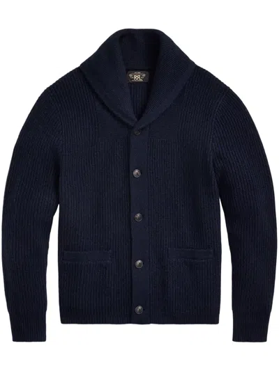Cashmere Cardigan Shawl Collar Ribbed Texture Pockets In Black