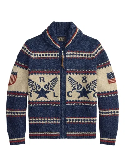 Zip-up Graphic Cotton Cardigan In Blue