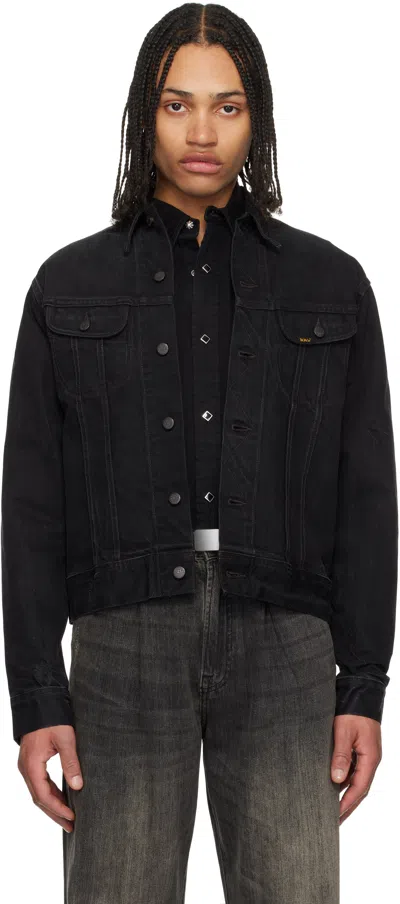 Denim Jacket Funnel Neck Long Sleeves In Black