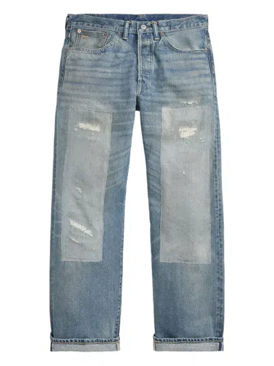 Straight-leg Distressed Jeans In Blue