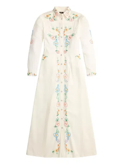 花卉刺绣中长连衣裙