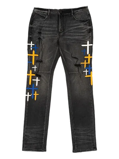 Cross Embroidery Bryant Jeans In Gray