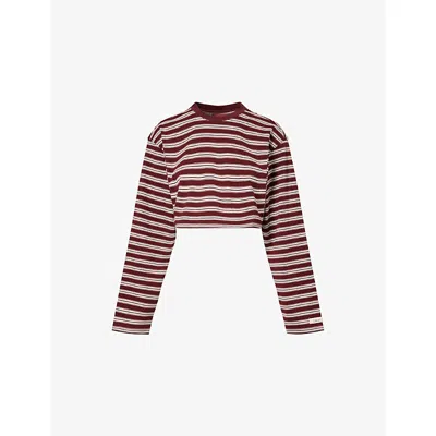 Womens Burgundy Striped Cropped Stretch-cotton T-shirt
