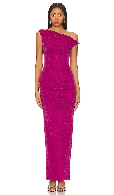 Vaneya Off Shoulder Lace Maxi Dress Berry In Brown