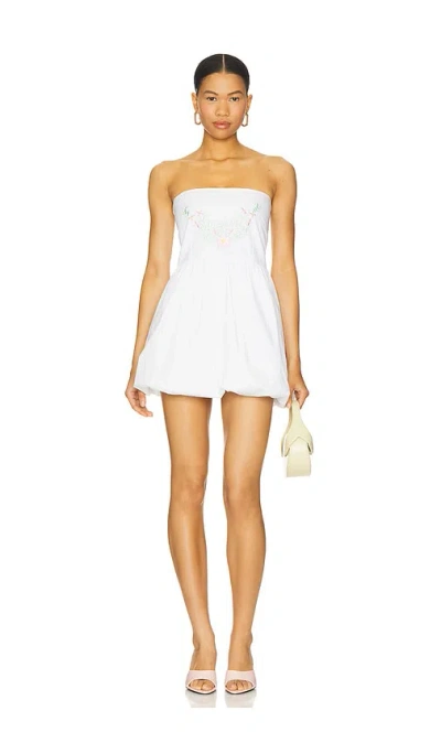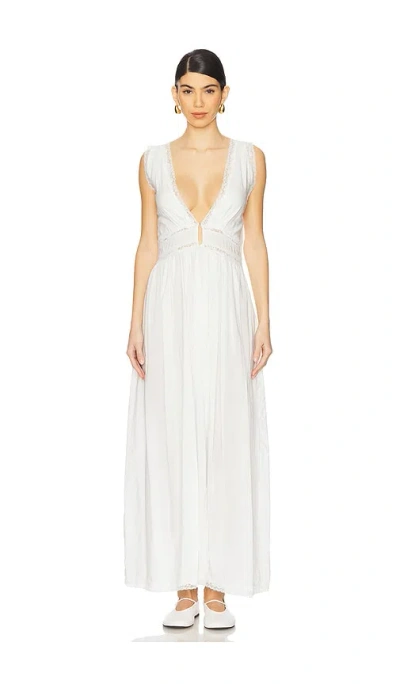 Shirred Embroidered Drop Hem Maxi Dress In White