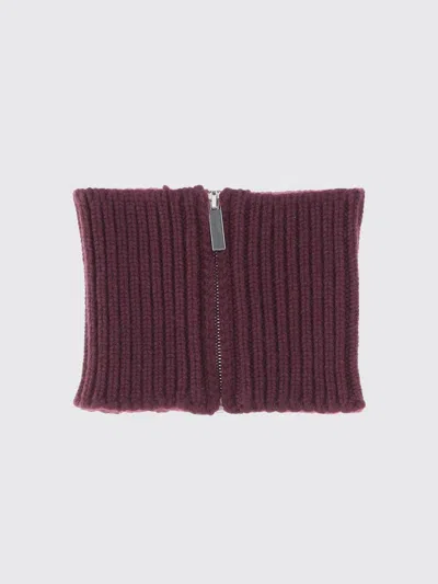 Ribbed Knit Scarf With Central Zipper In Deep Red In Brown