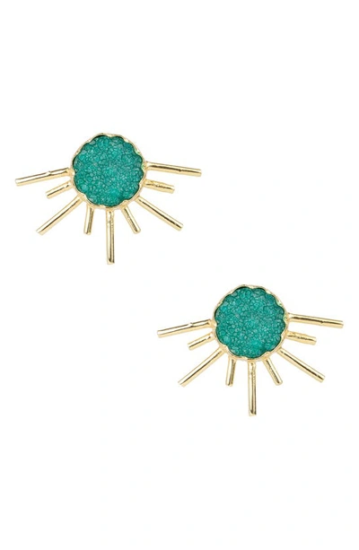 18k Plated Agate Druzy Drop Earrings In Turquoise